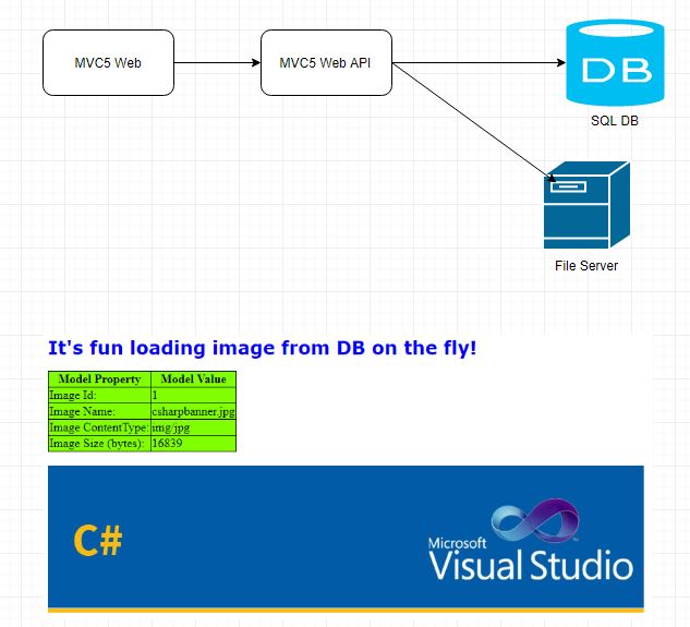 This application demonstrates how to display images in browser those are retrieved from DB or file server as byte array. Both the Web Controller and Api Controller are used in the same project for demo purpose. You would separate those layers in real-world application.