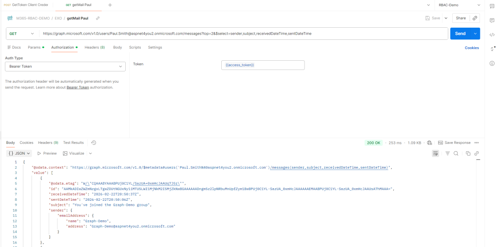 🧪 Test Case 2 — Read Mail from Allowed Mailboxes (Paul & Bob)
